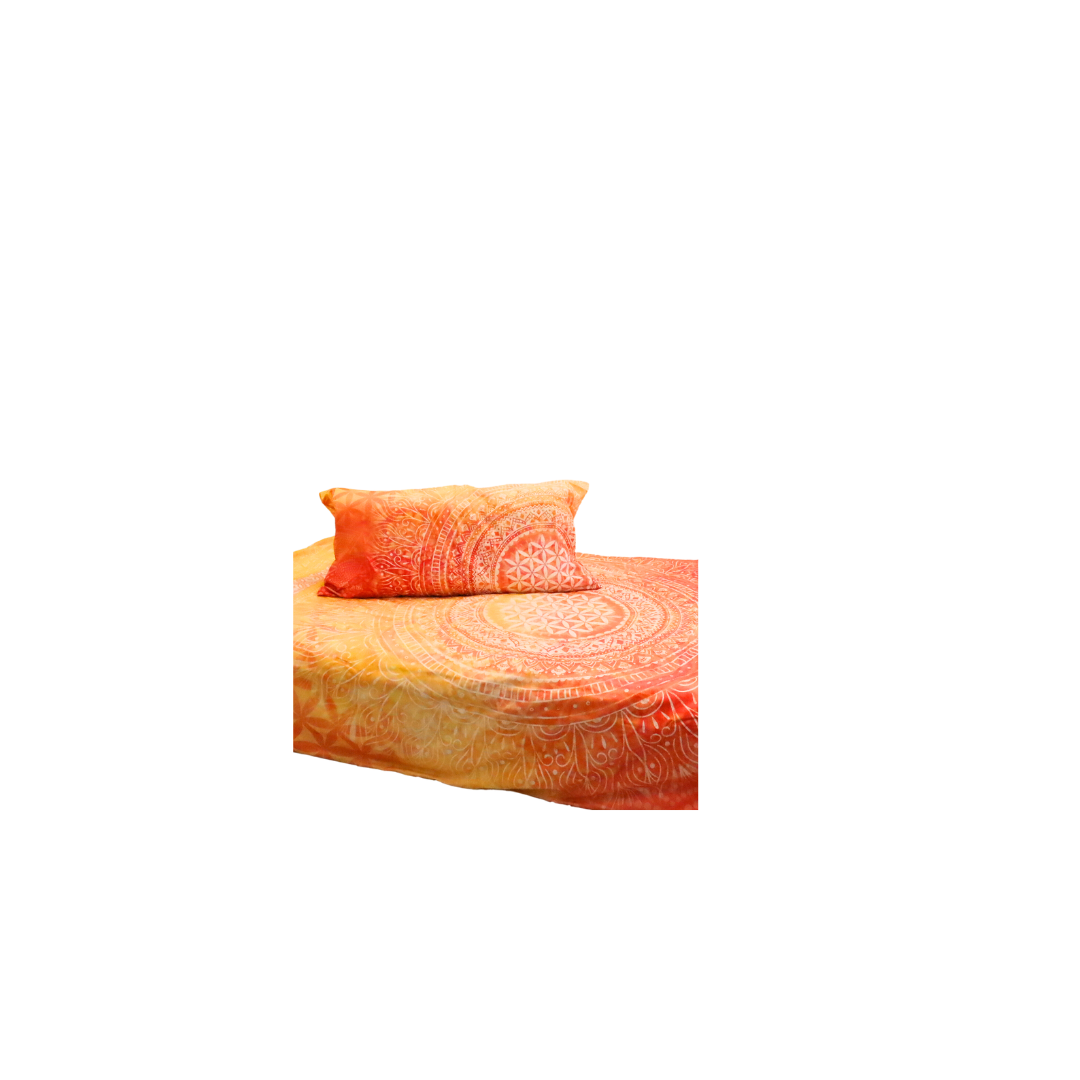 Sunrise bed linen, sustainable bed linen from Spirit of Om, 100% organic cotton tested for harmful substances, organic bed linen 100% ecological, suitable for allergy sufferers, energetic with rose quartz, 100% ecological from controlled organic cultivation, organic cotton, coloring according to certified ecological guidelines, CO2 climate-neutral produced