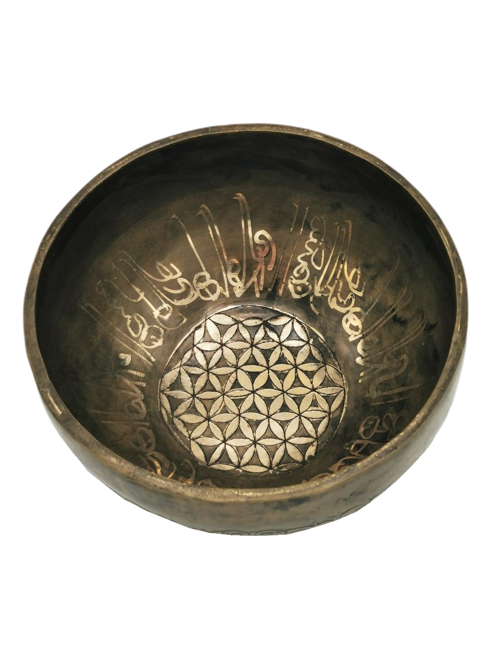 Hand-engraved, beautiful "universal bowl" sacral chakra singing bowl for sound therapy with a unique, extremely long-lasting sound