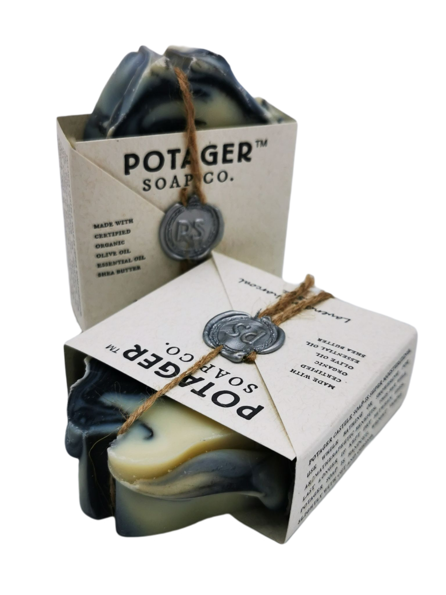 Creamy luxurious foam paired with a heavenly scent of organic certified lavender oil and activated charcoal that send the body and mind on a dream journey. The organic coconut oil used in Potager Soap caresses the skin, cleanses and forms a protective moisture shield. The already deep-cleansing effect is intensified with the added activated charcoal. The Potager Soap is a shower and bath experience made from certified organic ingredients that not only cleanses your skin, but also cares for it.