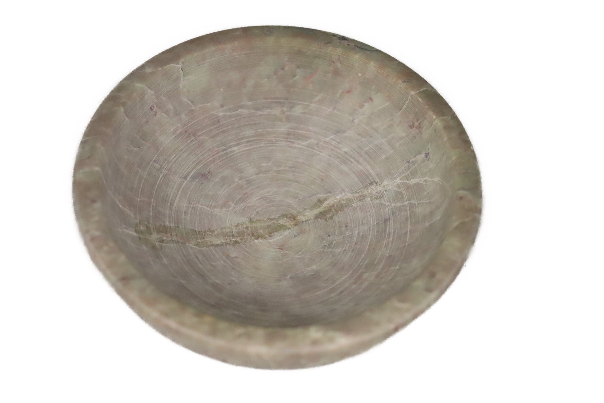 Diese Räucherschale aus Speckstein ist einzigartig und stilvoll. Sie ist hellgrau und mit ihren natürlichen Farben rot, grün und einem leichten Blaustich versehen. Die Schale zeigt ein zartes Muster auf, welches Marmorähnlich schimmert. Alternativ kann der Teller als Untersetzter für Kerzen verwendet werden und durch seine Elegante Optik wirkt er als großartiges Deko Element.