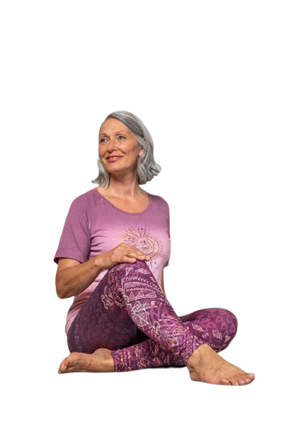 Der goldene Print dieses Shirts setzt ein Highlight und die dezenten Farben sind elegant und modern. Das Material aus Bio-Baumwolle ist angenehm zu tragen und der Schnitt gerade und schlicht. Dieses Shirt ergänzt Dein Yogaoutfit perfekt und passt ebenso zu jeder Jeans.