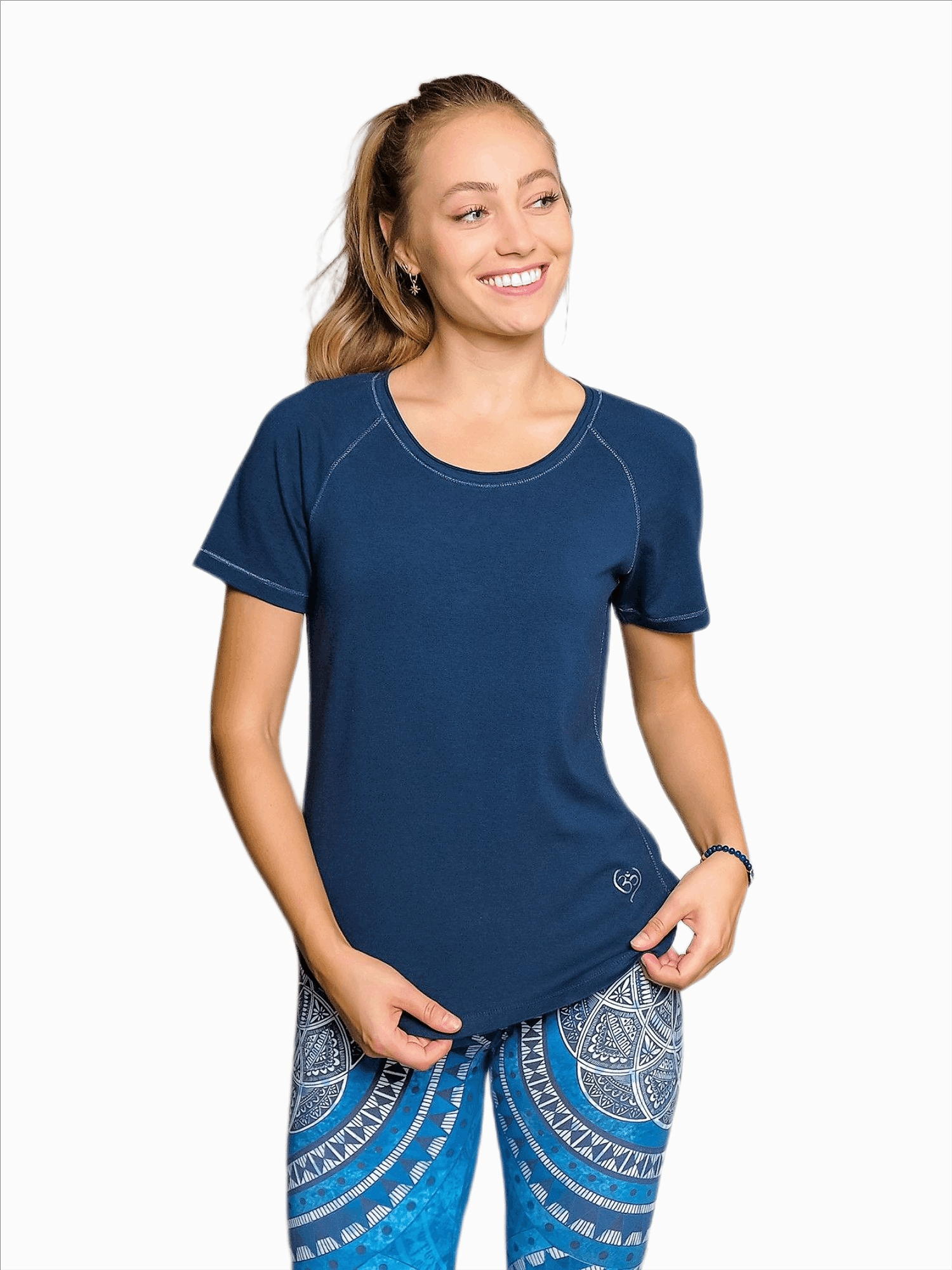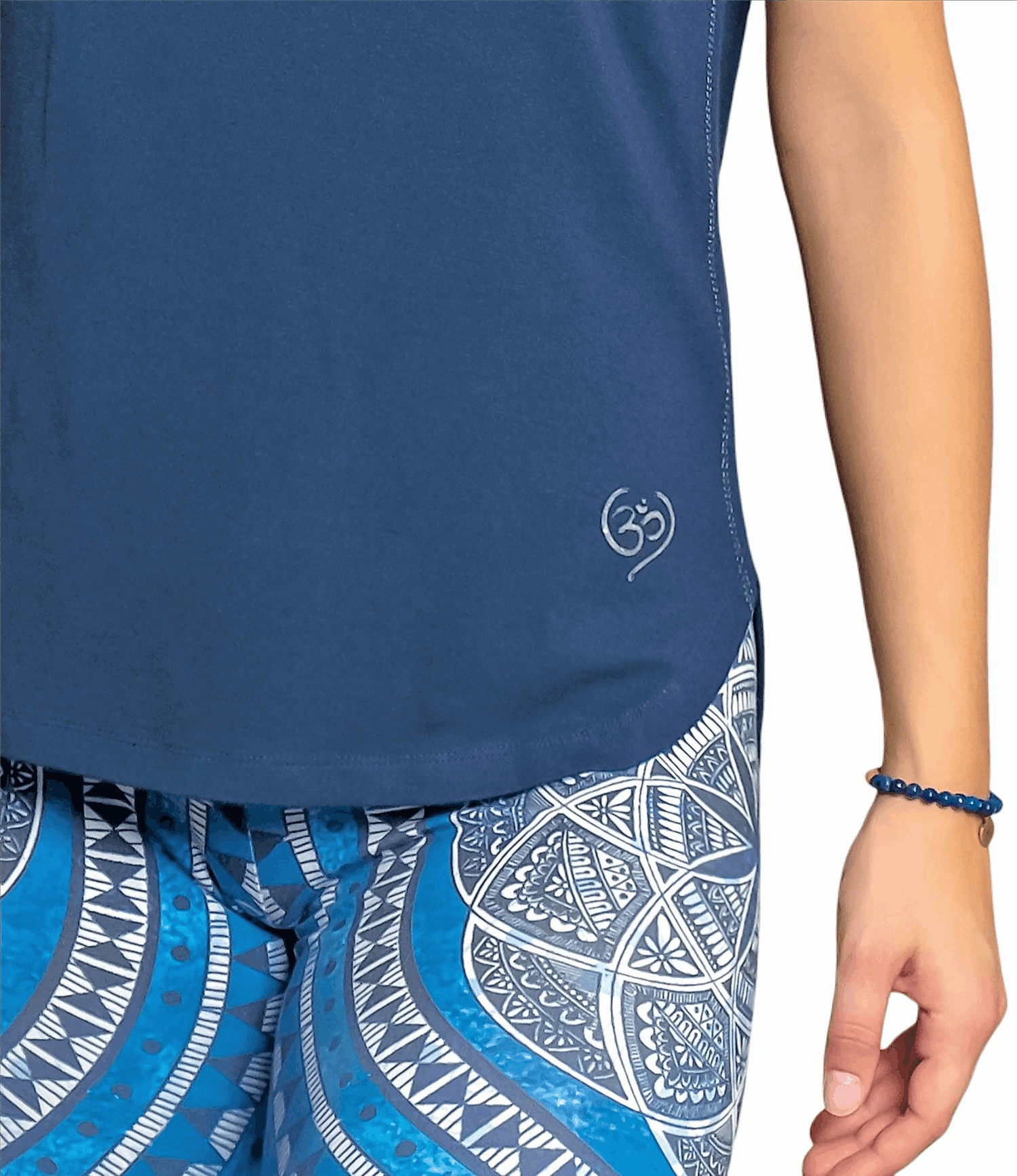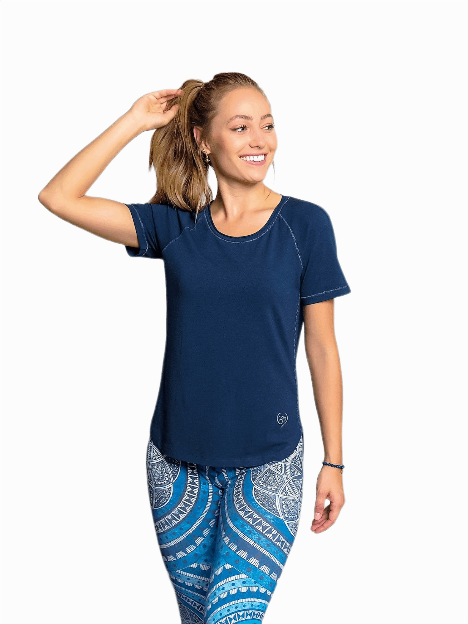 Yoga Shirt Raglan dunkelblau- dieses vielseitige und schöne Shirt ist aus bambusfaser und Bio Baumwolle (KbA) gefertigt. Das Yoga Shirt Raglan dunkelblau ist sehr angenehm auf der Haut, atmungsaktiv und geruchshemmend. Die Bambusfaser fällt sehr weich und ist anschmiegsam. Das Yoga Shirt Raglan dunkelblau ist auf Grund seiner Atmungsaktivität perfekt für sportliche Aktivitäten geeignet. Das Yoga Shirt Raglan dunkelblau passt auch perfekt zur Jeans oder ins Büro. Der leicht figurbetonte, lockere Schnitt, sowie das weich fließende Material ist garantiert auch dein Lieblingsteil! Das Yoga Shirt Raglan dunkelblau schmeichelt jeder Figur. Die zart betonten Raglan- Nähte in Silber wirken sehr edel. Ein kleines Silbernes OM in einem Herz ist auf der Hüfte aufgedruckt. Das OM zusammen mit den ebenfalls in Silber aufgedruckten Affimationen in der Innenseite des Rückens sollen dir helfen, Körper, Geist und Seele in Einklang zu bringen. Das OM unterstützt deine Schöpferkraft. Die Affirmationen: "ich bin liebenswert, wertvoll,einzigartig und wunderbar." sollen dich stärken und dein Herz wärmen. In das Material des Yoga Shirt Raglan dunkelblau wurde microfeiner Rosenquarz Edelstein eingearbeitet. Rosenquarz kann dir dabei helfen, dein inneres Wohlbefinden und den Energiefluß zu steigern. Rosenquarz soll dein Herz öffnen. Das Yoga Shirt Raglan dunkelblau passt zur Yoga Leggings indigo peach aber auch zu vielen anderen Leggings und Yoga Hosen. Material: 60% Viskose ( aus Bambus- Zellstoff), 35% Baumwolle (Bio-kbA), 5% Elastan- ökologische, digitale Färbung ohne Wasserverbrauch Edelstein: Rosenquarz Paßform & Material: -regular fit -weiches, dehnbares Material -gerundeter Saumabschluß -Raglan- Schnitt -vegan